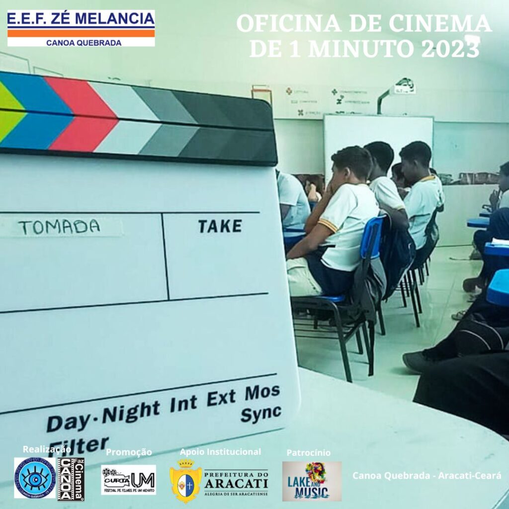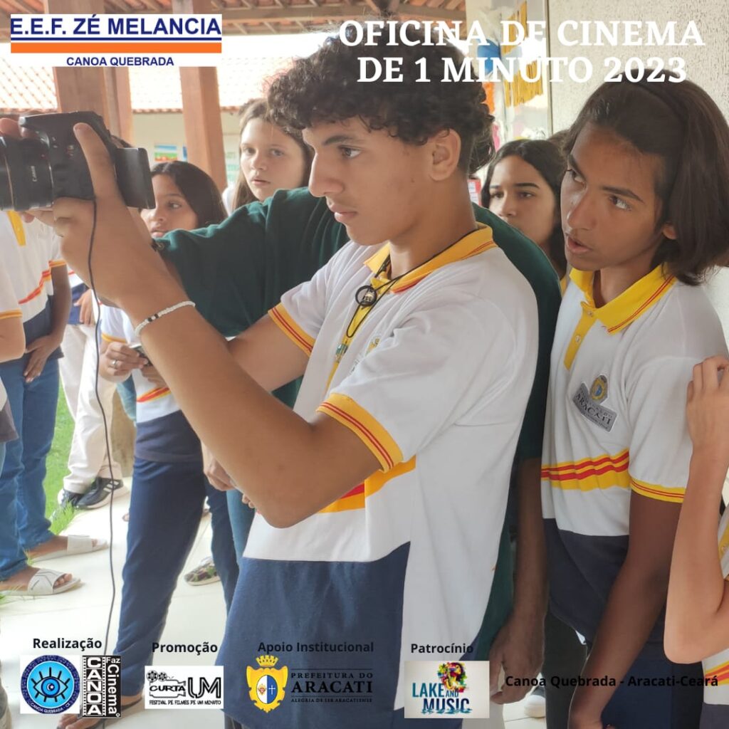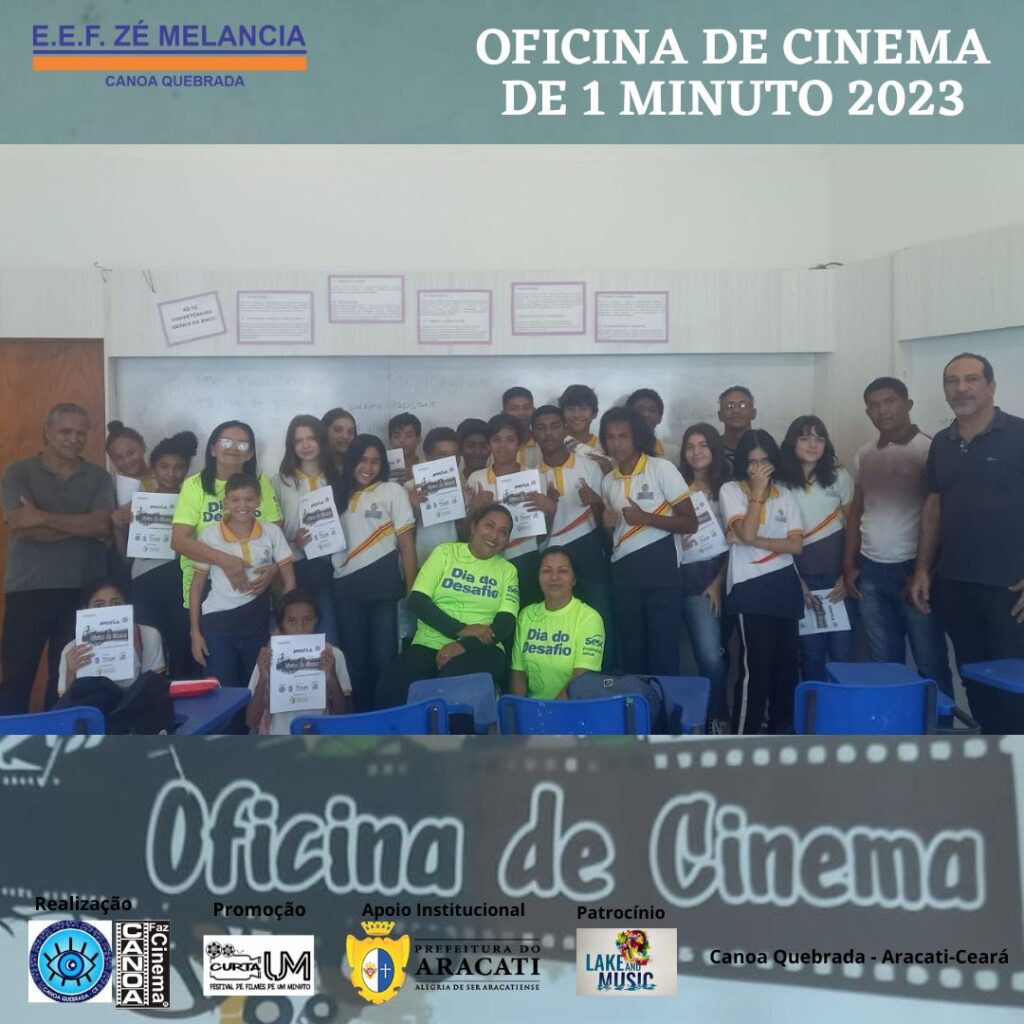 Atenção: Luz! Câmera! Ação! Comandos como estes estão mais familiarizados para os jovens participantes das Oficinas de Cinema de 1 minuto – Roteiro e Produção, promovidas por meio do projeto “CANOA FAZ CINEMA”, um Projeto realizado pelo Instituto Olho Protetor, com apoio da Prefeitura do Aracati. As Oficinas aconteceram na Escola Municipal Zé Melancia, em Canoa Quebrada, de 30 de maio a 13 de junho, nos turnos da manha, tarde e noite. Ao total, 3 turmas de 20 horas como carga horária, cerca de 50 alunos foram beneficiados com o projeto. As oficinas foram ministradas pelo Cineasta Amazonense Zé Leão, com 40 anos de experiência e mais de 200 oficinas de cinema ministradas.