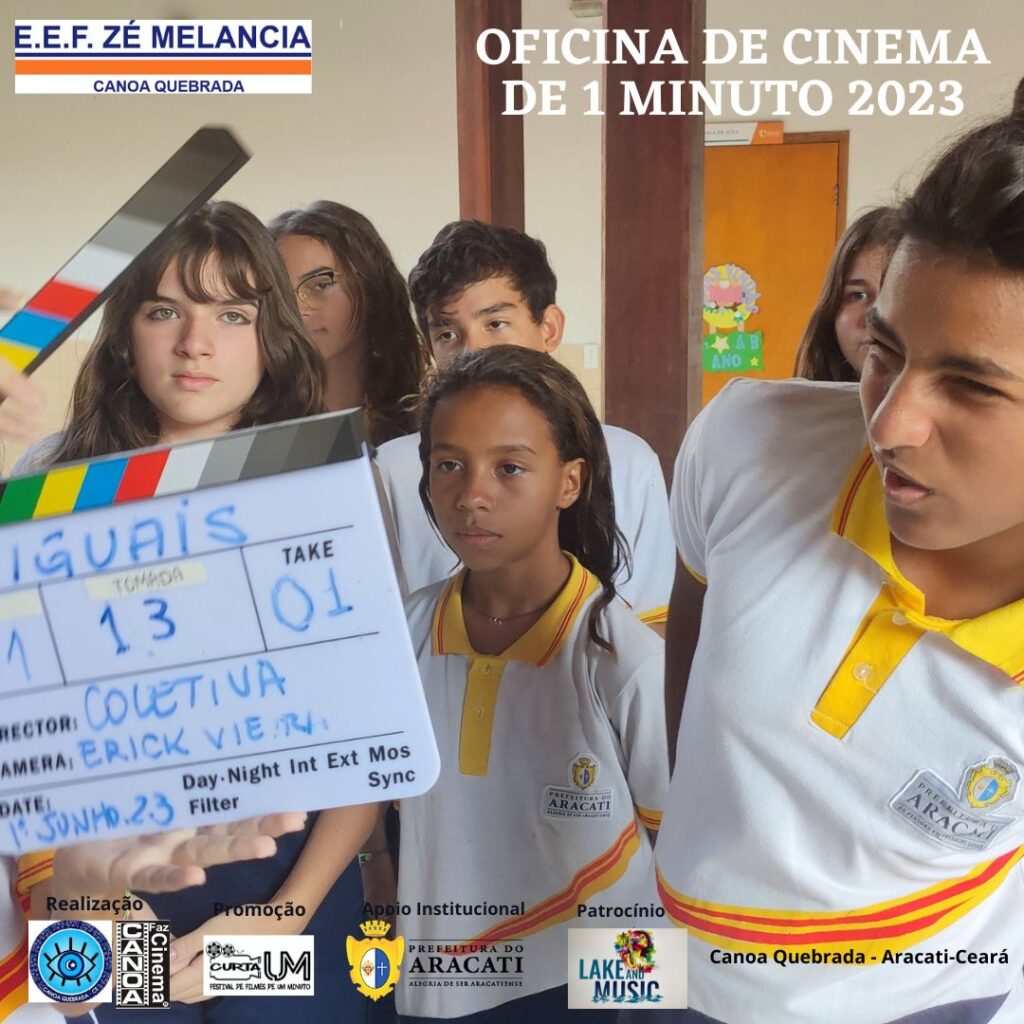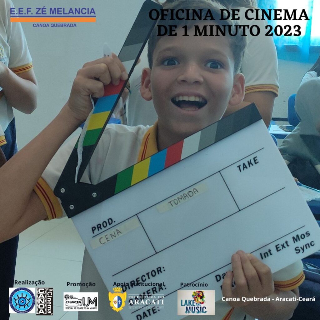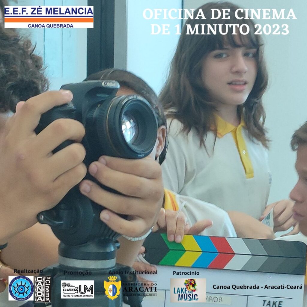 Atenção: Luz! Câmera! Ação! Comandos como estes estão mais familiarizados para os jovens participantes das Oficinas de Cinema de 1 minuto – Roteiro e Produção, promovidas por meio do projeto “CANOA FAZ CINEMA”, um Projeto realizado pelo Instituto Olho Protetor, com apoio da Prefeitura do Aracati. As Oficinas aconteceram na Escola Municipal Zé Melancia, em Canoa Quebrada, de 30 de maio a 13 de junho, nos turnos da manha, tarde e noite. Ao total, 3 turmas de 20 horas como carga horária, cerca de 50 alunos foram beneficiados com o projeto. As oficinas foram ministradas pelo Cineasta Amazonense Zé Leão, com 40 anos de experiência e mais de 200 oficinas de cinema ministradas.