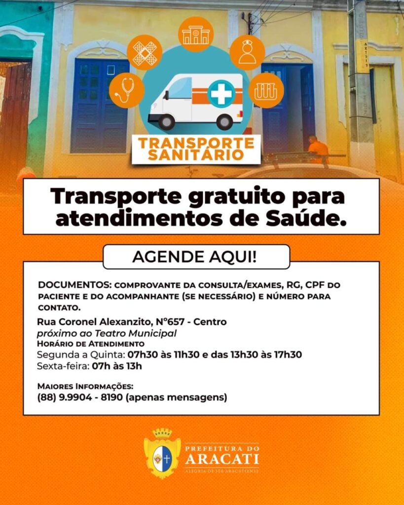 O município de Aracati divulgou em suas redes sociais informações sobre como agendar o transporte público e gratuito para demandas fora do domicílio, ou seja, em outras cidades, quando o assunto for saúde.