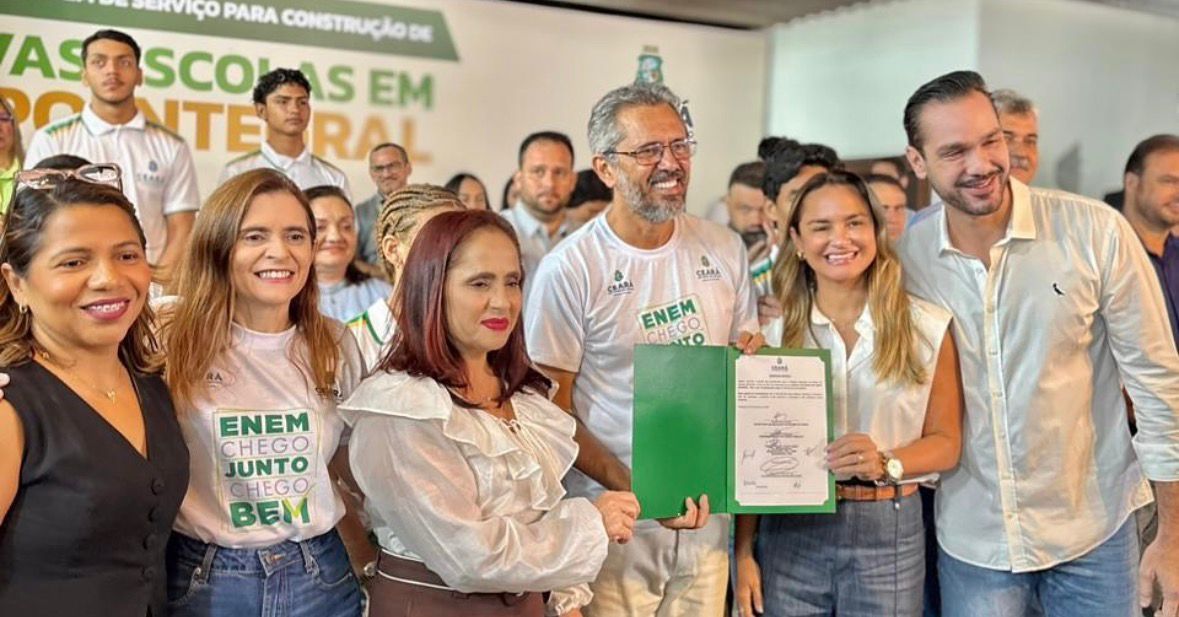 O Ceará avança para a universalização do tempo integral na rede pública estadual. Nesta sexta-feira (7), o Governo do Estado autorizou a construção de oito novas escolas de Ensino Médio, com mais de R$ 87 milhões em investimento e cerca de 4.590 estudantes beneficiados. A solenidade foi conduzida pelo governador Elmano de Freitas, no Palácio da Abolição, acompanhado da secretária da Educação, Eliana Estrela; do secretário-Chefe da Casa Civil, Chagas Vieira; prefeitos; e outras autoridades.