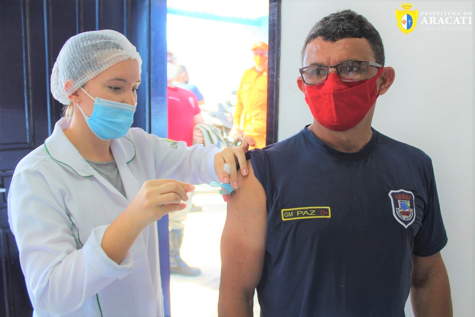De acordo com a Prefeitura do Aracati, foram vacinados Guardas Municipais, Bombeiros, Policiais Militares, Policiais Rodoviários Federais e Policiais Civis que atuam na linha de frente do combate à pandemia.