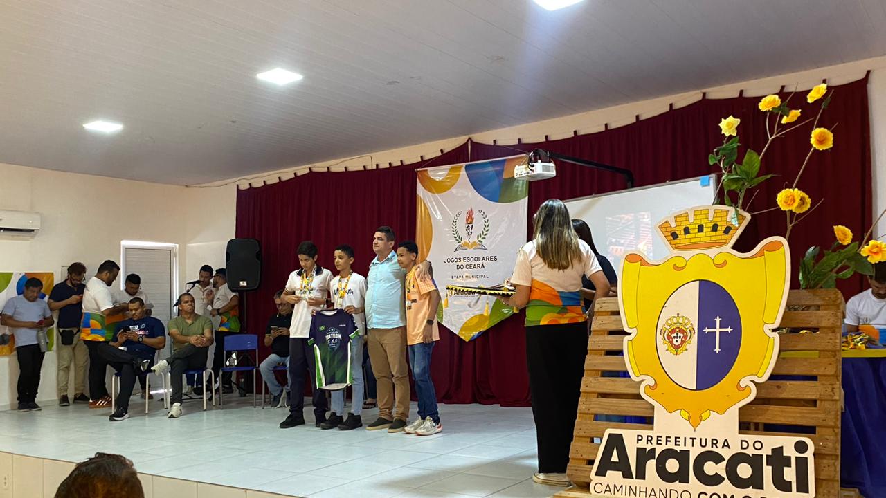 Nesta quinta-feira (30), o município de Aracati realizou a cerimônia de premiação dos Jogos Escolares do Ceará 2026 – Etapa Municipal referente às modalidades individuais. Evento aconteceu na Escola São Marcelino Champagnat.