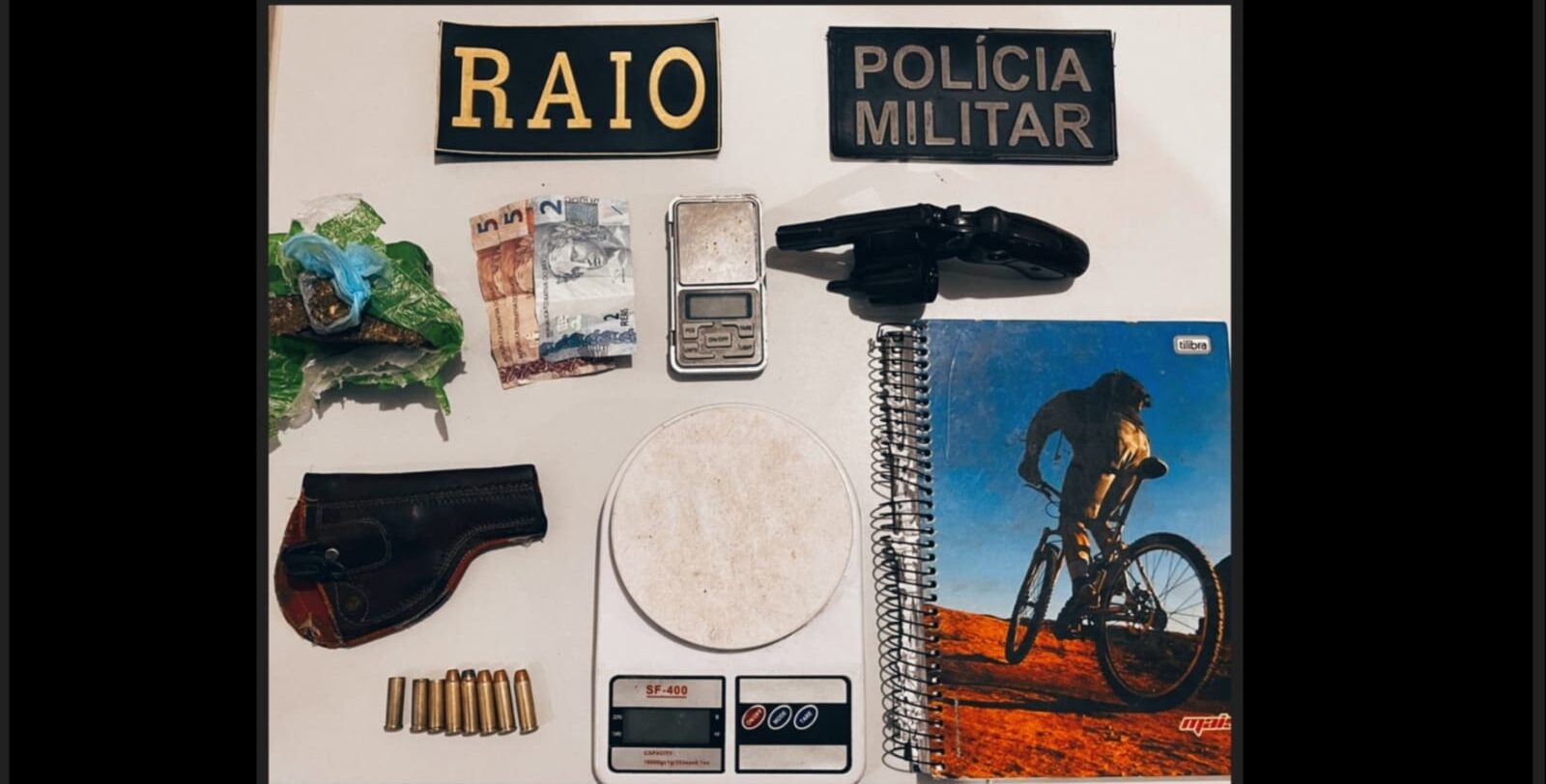 Os policiais conseguiram encontrar a arma e, posteriormente, conversando com o outro suspeito, o mesmo informou que em sua residência havia uma certa quantidade de droga. Devido a isso, as equipes foram até lá e, com o consentimento da mãe do suspeito, fizeram uma vistoria na casa e encontraram 159 gramas de maconha, duas balanças de precisão e três cápsulas de munições deflagradas.