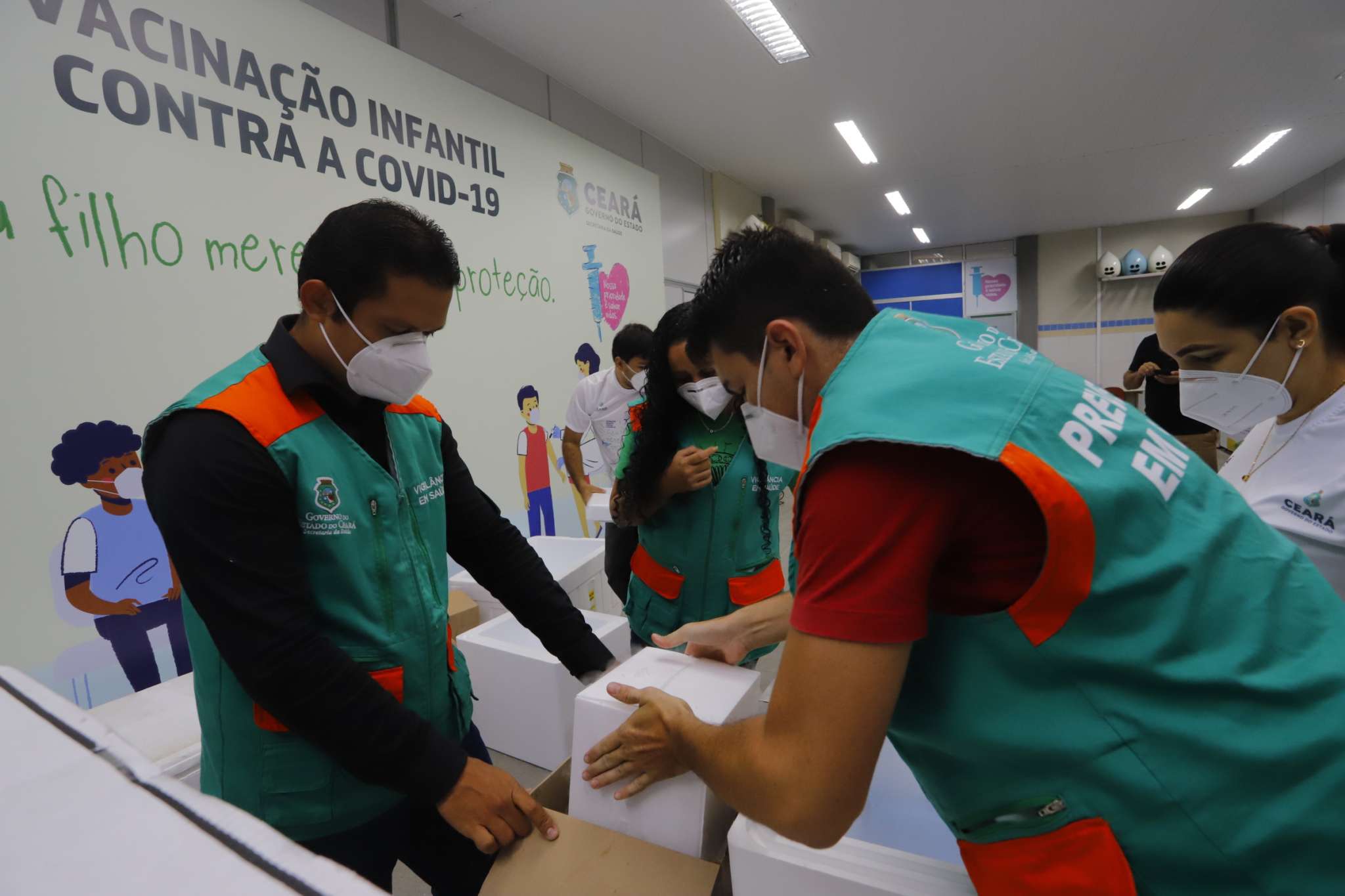 Após a chegada da primeira remessa na sexta-feira (14), seguindo a logística que caracteriza a agilidade para distribuição da vacina, as doses pediátricas chegaram a todos os municípios cearenses em até 24 horas, por meio de rotas aéreas e terrestres.