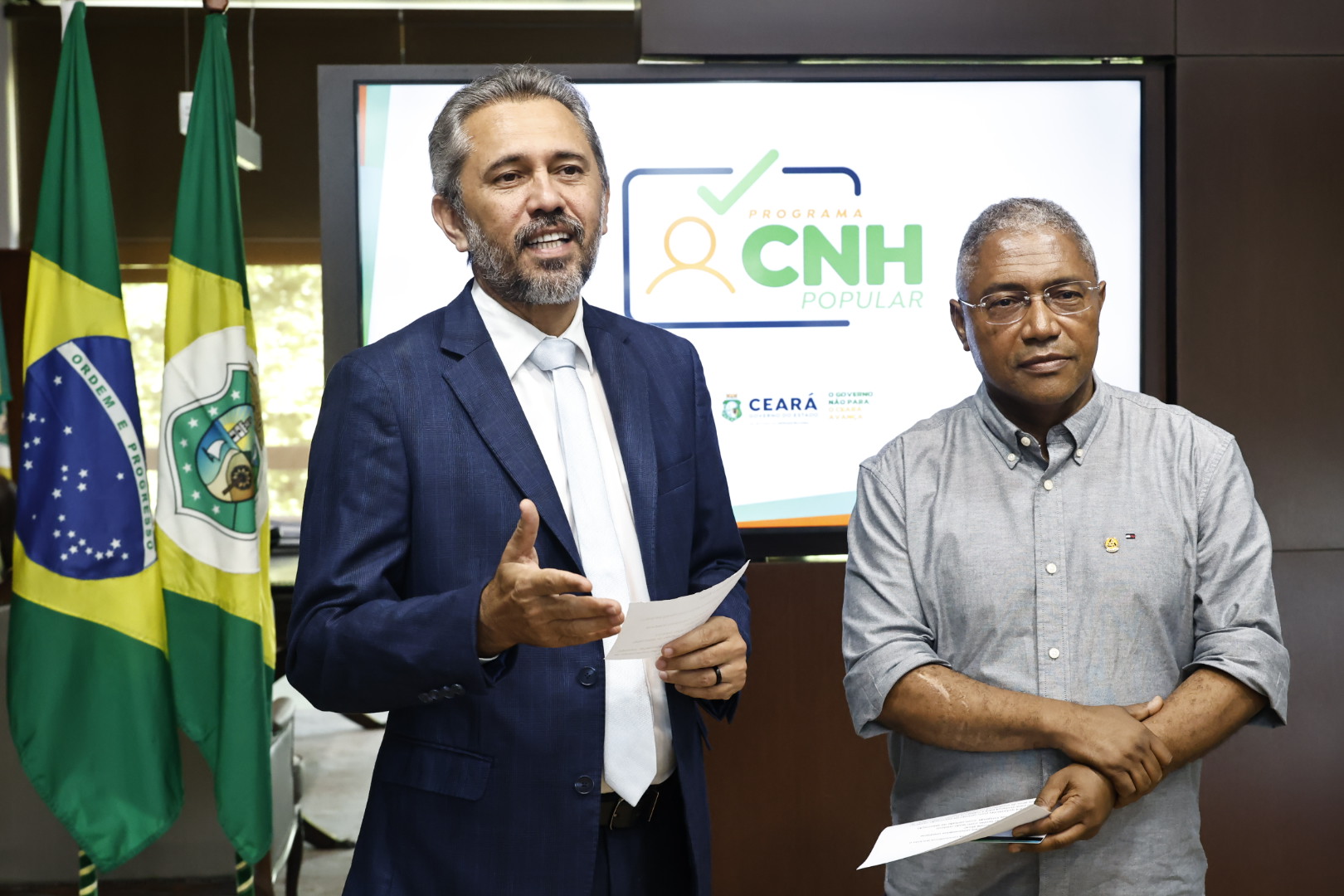 O Governo do Ceará lançou, nesta quinta-feira (6), 35 mil vagas para o programa CNH Popular 2025, que viabiliza capacitação e habilitações gratuitas nas categorias A (moto) e B (carro) para os cearenses de baixa renda. As inscrições começaram nesta quinta com 29.650 vagas abertas. As próximas vagas serão disponibilizadas em breve. O lançamento foi conduzido pelo governador Elmano de Freitas, no Palácio da Abolição, com transmissão ao vivo, acompanhado do superintendente do Departamento de Trânsito do Ceará (Detran Ceará), Waldemir Catanho. As inscrições já podem ser realizadas no site detran.ce.gov.br a partir desta quinta-feira (6).