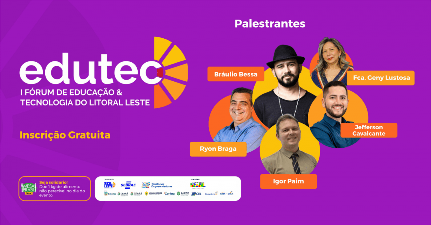 A educação do futuro não é uma promessa distante. Ela se constrói no presente, com ações concretas, debates profundos e a união de quem acredita no poder transformador do ensino. É com este propósito que a ADR Sol do Leste e o Sebrae realizam, na próxima sexta-feira, 24 de outubro de 2025, o Edutec 2025 – I Fórum de Educação & Tecnologia do Litoral Leste. O evento acontecerá no Hotel Parque das Fontes, em Beberibe/CE, e espera reunir cerca de 800 educadores, gestores e especialistas dos municípios de Aracati, Beberibe, Cascavel, Fortim, Icapuí, Itaiçaba, Pindoretama, Palhano e Jaguaruana.