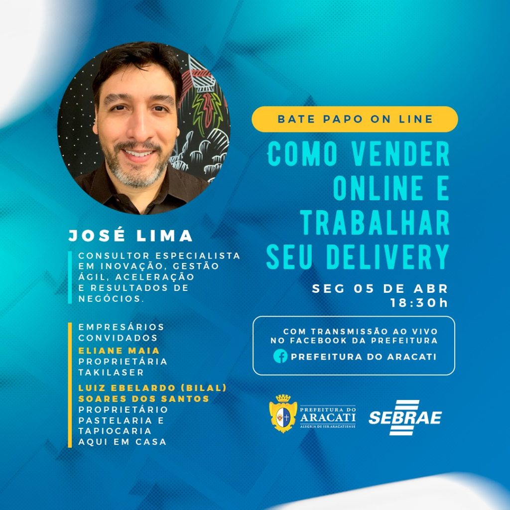 A Prefeitura do Aracati, a Secretaria de Desenvolvimento Econômico, Trabalho e Renda e o Sebrae convidam toda a população para um bate-papo online com o consultor especialista em inovação, gestão ágil, aceleração e resultados de negócios, José Lima.