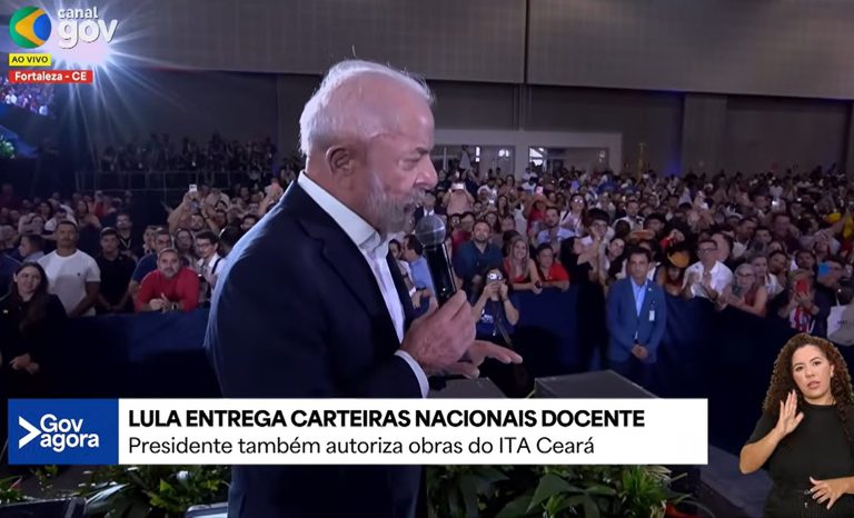 Lula participava de uma cerimônia em Fortaleza (CE), em que fez a entrega de carteiras nacionais docentes a professores e professoras e autorização nova fase nas obras de construção do Instituto Tecnológico Aeronáutico (ITA). Ele disse que fazer parte da luta contra as violências sofridas pelas mulheres é uma questão que deve ser colocada acima de demais interesses.