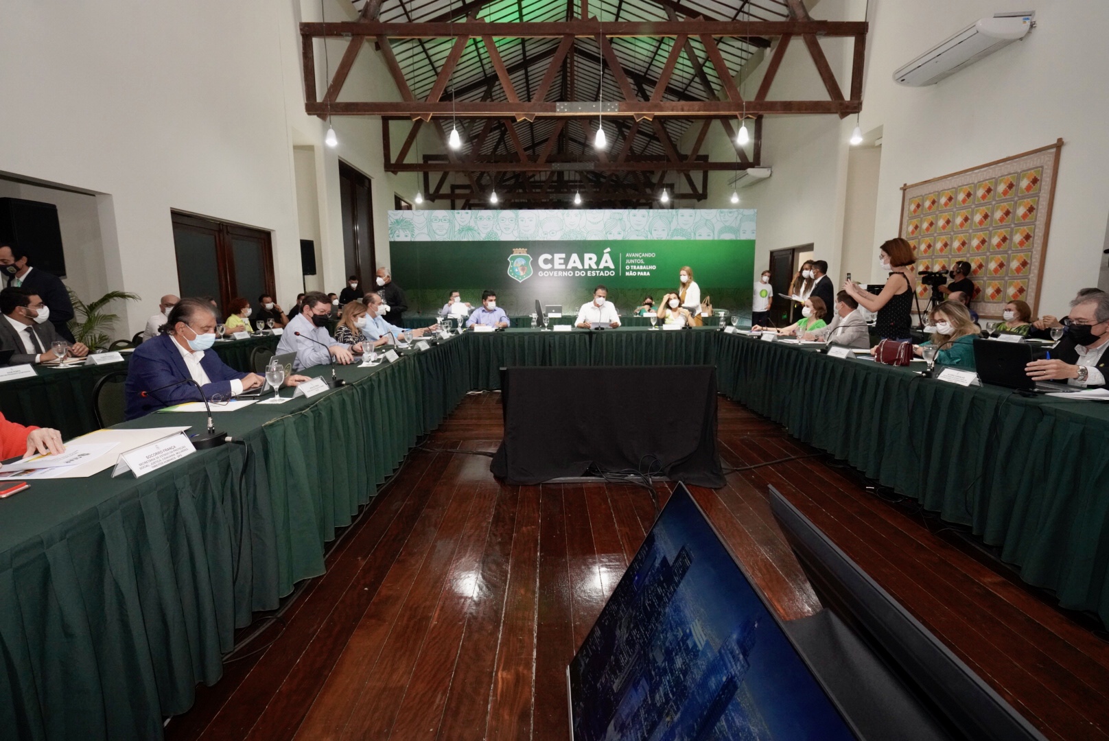 Antes de começar a reunião, Camilo Santana falou com a imprensa sobre o trabalho que seria desenvolvido durante o dia. “Vamos fazer um balanço do que traçamos como metas e o que alcançamos para esse ano. O pessoal do Planejamento e da Economia vai fazer um balanço como é que foi a questão dos números. Vamos fazer também um balanço importante sobre a questão da pandemia, um desafio enorme – principalmente no primeiro semestre desse ano. E vamos também traçar as prioridades para o último ano do governo. Será um ano que temos várias entregas a serem realizadas”, afirmou governador.