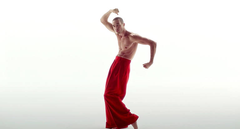 É com o peitoral branco à mostra e o quadril rebolando em uma calça pantalona vermelha que Tiago Iorc surge no videoclipe de “Masculinidade”, lançado há pouco.