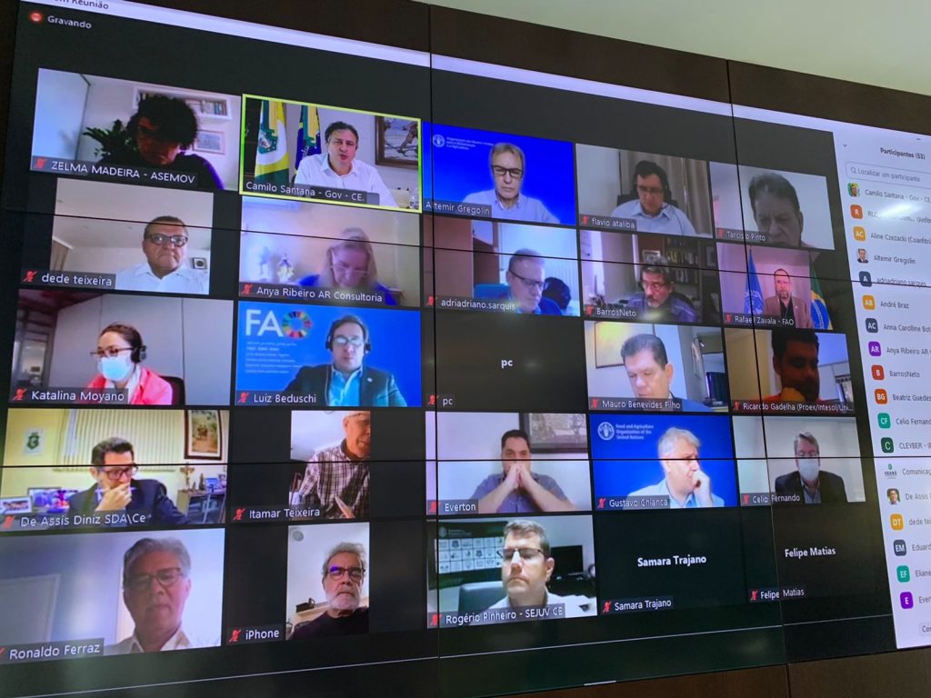 O governador do Ceará, Camilo Santana, participou do workshop “Governança e Políticas Territoriais”, que foi realizado de forma on-line, nesta quinta-feira (23). O evento teve como objetivo a promoção de um diálogo sobre o Projeto Ceará 2050, considerado inovador e objeto de estudo da FAO Brasil – Organização das Nações Unidas para a Alimentação e a Agricultura.