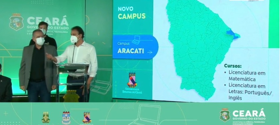 A previsão é de que o campus da UECE funcione no Colégio Marista de Aracati, de acordo com o anúncio do governador feito ao lado do prefeito.