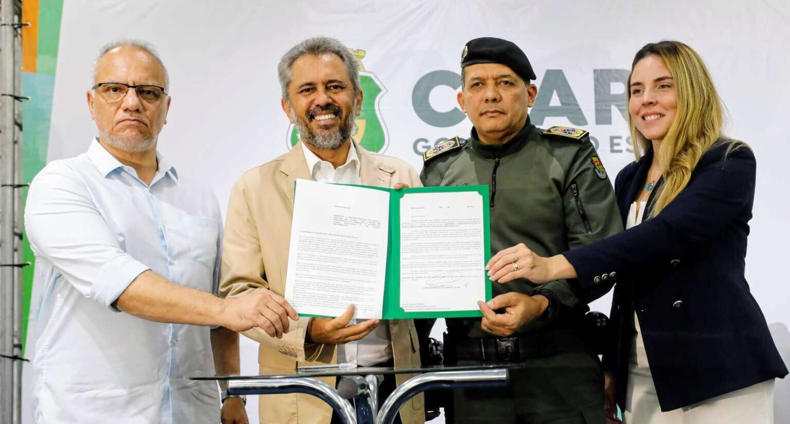 Aproximando, cada vez mais, o cidadão cearense dos serviços e ações da Secretaria da Segurança Pública e Defesa Social (SSPDS), o governador do Ceará, Elmano de Freitas, assinou, nesta terça-feira (16), Projetos de Lei (PLs) para a reestruturação da Secretaria da Segurança Pública e Defesa Social (SSPDS) e de todas as suas vinculadas. As assinaturas aconteceram em uma solenidade no auditório da SSPDS, no Centro Integrado de Segurança Pública (Cisp). Além do chefe do Executivo, o evento contou com a presença do secretário da Segurança Pública e Defesa Social (SSPDS), Roberto Sá, representantes das forças envolvidas, entre outras autoridades.
