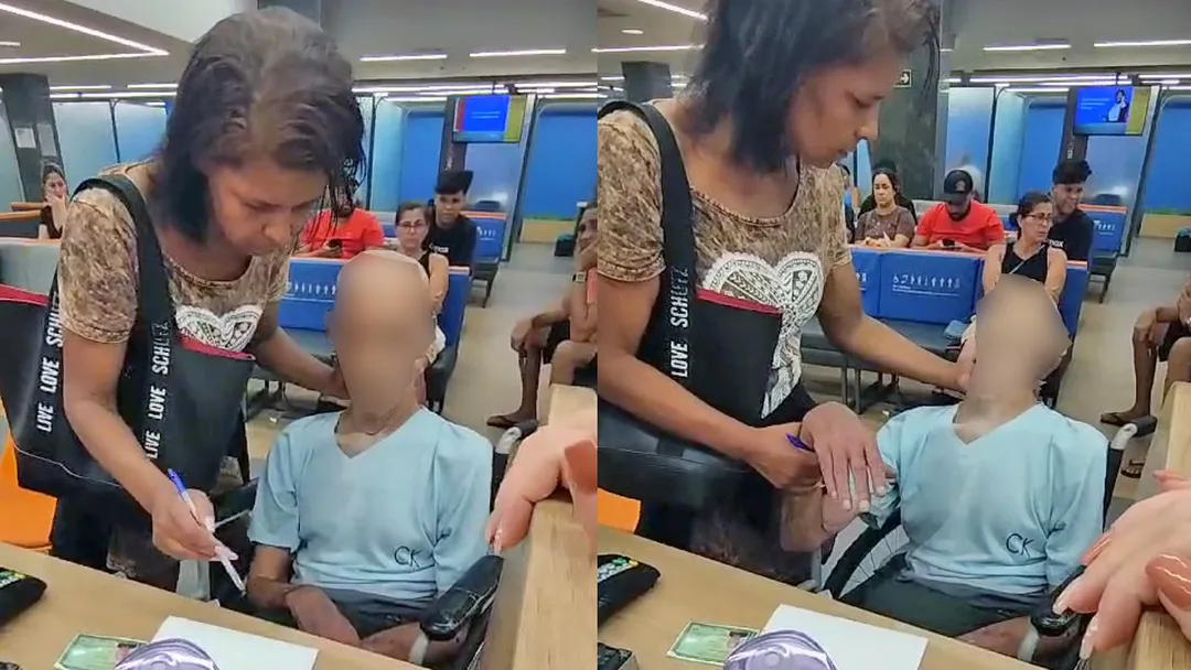 A tentativa de saque na agência bancária foi registrada em vídeo. Nas imagens, o idoso está pálido e sem qualquer reação ou reflexo, sentado em uma cadeira de rodas, enquanto Érica pede repetidas vezes que ele assine o empréstimo de R$ 17 mil. A mulher, que informou à polícia ser cuidadora e sobrinha dele, chega a dizer que ele “era assim mesmo”. Os funcionários do banco percebem que o idoso não reage e decidem chamar o Serviço de Atendimento Médico de Urgência (SAMU).
