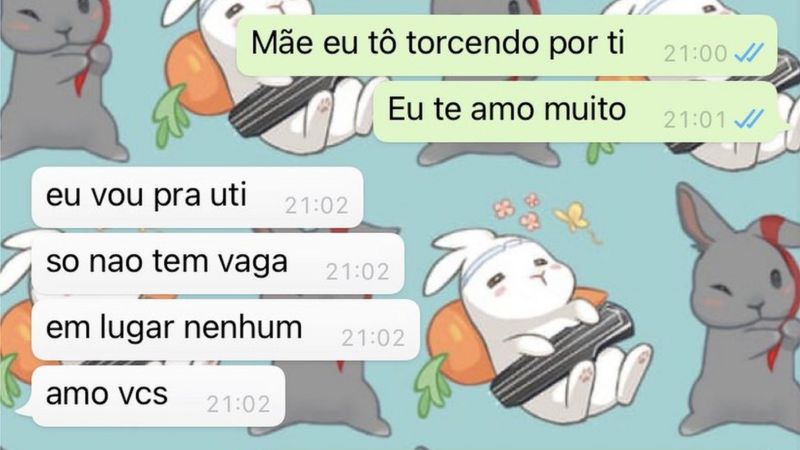Na última semana viralizou a história emocionante de Valéria Zadorozny, vítima da covid-19. “Eu vou pra UTI, só não tem vaga em nenhum lugar. Amo vocês”, escreveu a comerciante em mensagens para a filha mais velha, a assistente comercial Giulia Mariana, no último sábado (27).