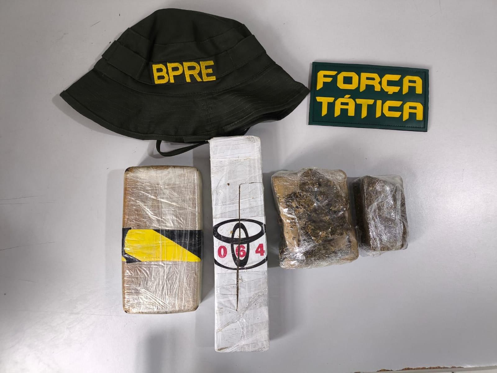 Durante a busca no interior do automóvel, os policiais localizaram aproximadamente 1,025 kg de crack e 1,514 kg de maconha, totalizando cerca de 2,5 kg de drogas.