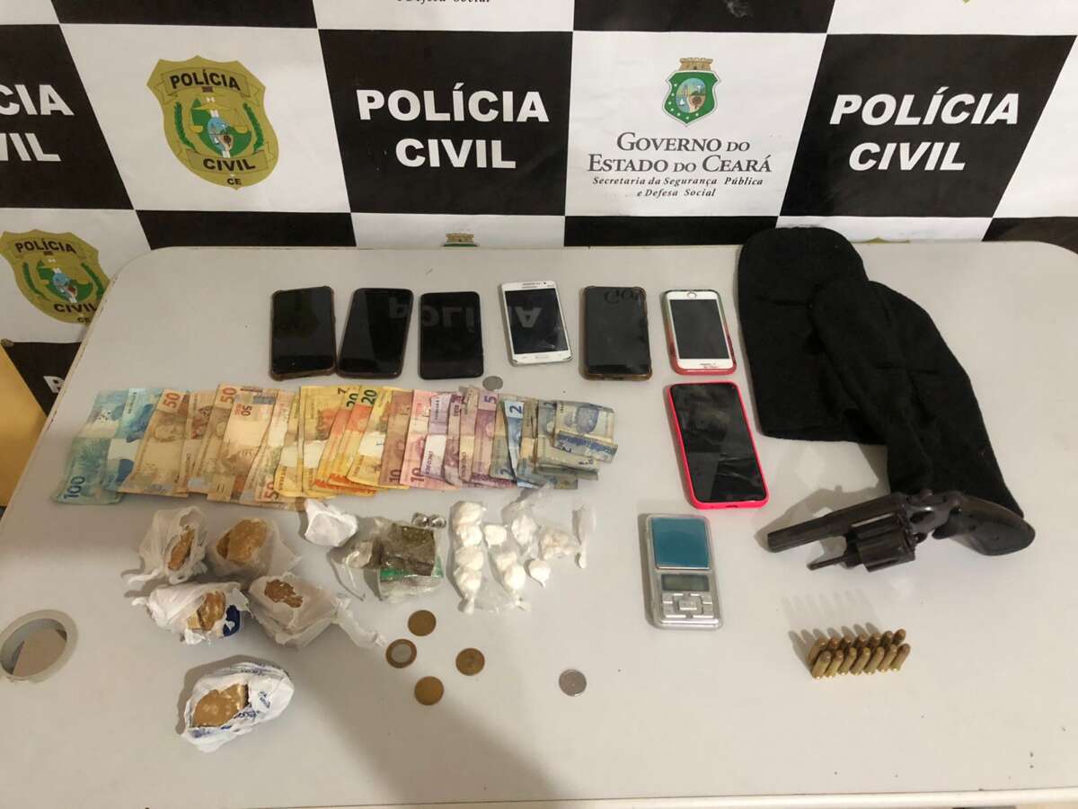 Os homens foram identificados como Mário Márcio Araújo da Costa (27), com antecedentes por roubo a banco; e Mário Mateus Araújo da Costa (23). Com os irmãos, a composição encontrou uma quantidade de maconha e crack. Dentro da casa da dupla, em um armário na cozinha, a PC-CE encontrou um revólver calibre 38 municiado e mais uma quantidade de crack e maconha.