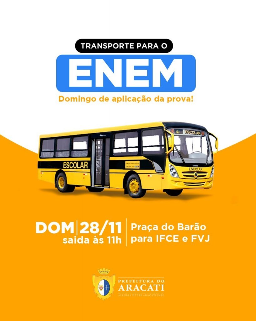 No município de Aracati a prefeitura fornecerá um transporte para levar os candidatos até os locais de aplicação da prova.