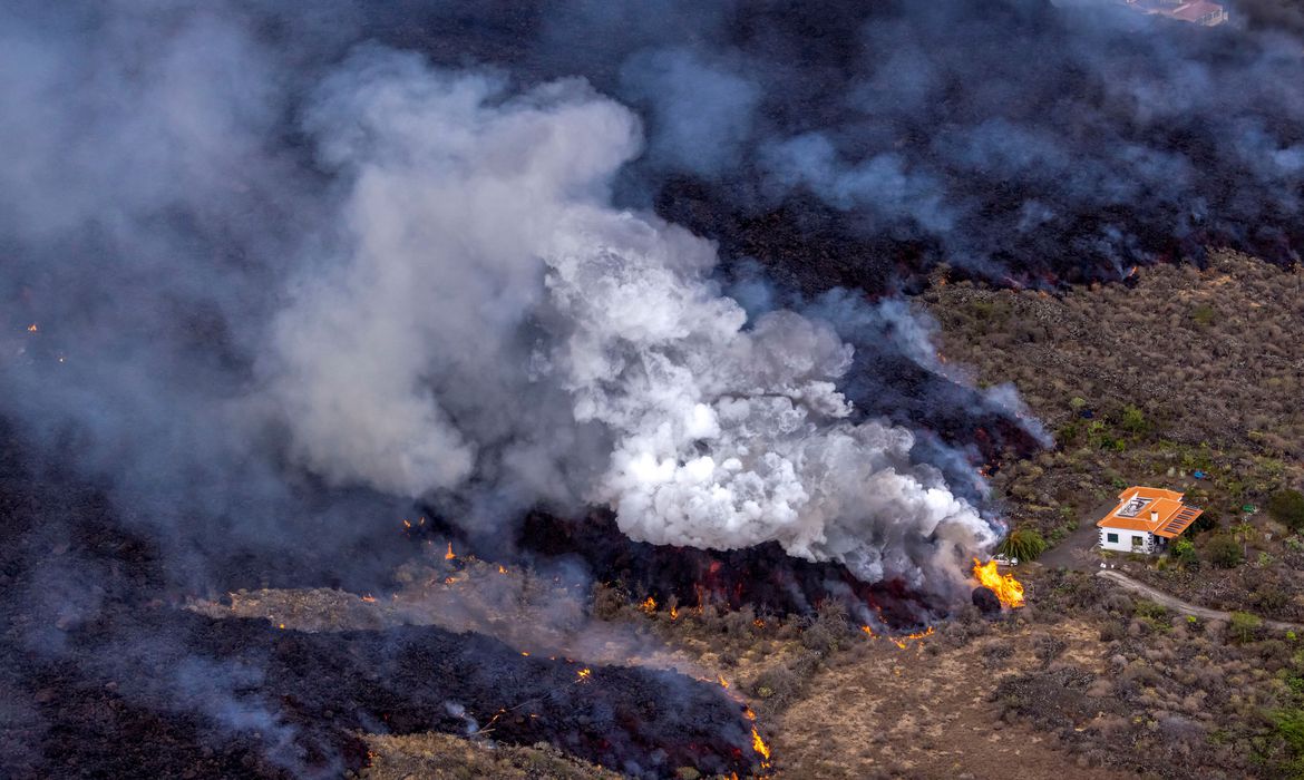Desde 19 de setembro uma lava negra flui lentamente pelo flanco oeste do vulcão em direção ao mar, destruindo mais de 500 casas, bem como igrejas e plantações de banana, de acordo com o programa de monitoramento de desastres Copernicus, da União Europeia.