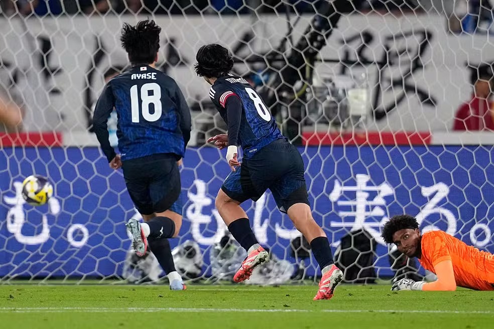 Aos 25, a seleção japonesa virou com Ueda, de cabeça.